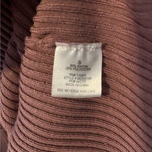 Mauve Ribbed Midi Button Down Fitting Long Sleeve Dress Small