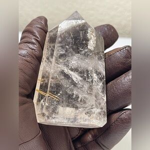 This gold rutile in Quartz hand carved tower is so cool!! Super rare rutile color. This beauty is part of my personal collection and looks gorgeous on display. Quartz is known as the master healer so this buddy is perfect for meditation 💛 Please feel free to comment any questions, thank you! ☺️