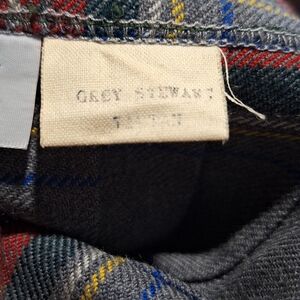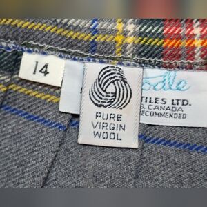 Vintage Tartan Wool Skirt womans size 14. Skirt is pure virgin wool Mr Poodle Bonda Textiles Ltd Yarmouth Nova Scotia Canada. Tag says Grey Stewart I believe... it is hard to read. It has material buttons. Skirt is in excellent condition. Pleated in the back. Waist is approximately 16 inches across. It is approximately 29 inches long.