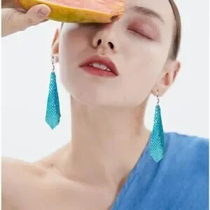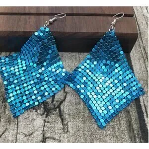 Metal Mesh Grid Earrings Blue