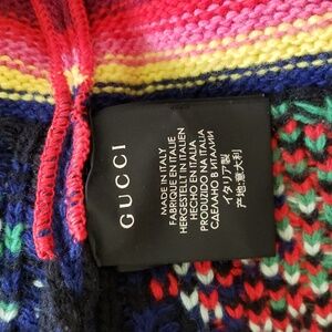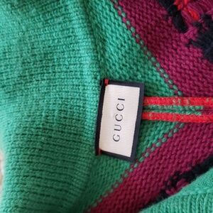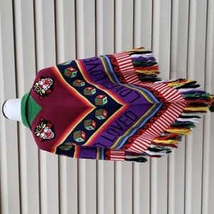 Gucci 100% wool multicolor patchwork poncho with tassels. Made in Italy. Very good pre-owned condition, gently used.