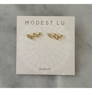 Gold Round Cluster Arch Earrings Sterling Silver Brand New