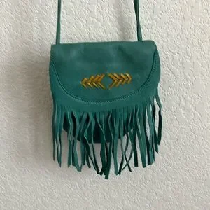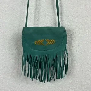Free People X Cut and paste Los Angeles Embroidered Fringe Crossbody Leather