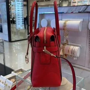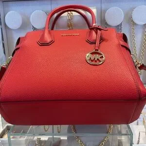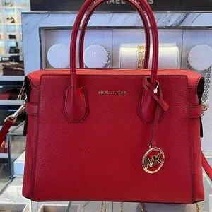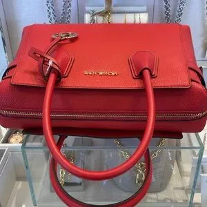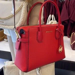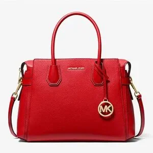 Michael Kors Mercer Medium Top-Zip Belted Satchel Crossbody Purse BRIGHT RED NW