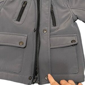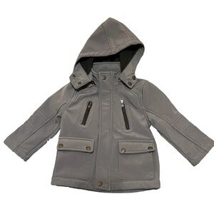 In new condition. Size 2T. Waterproof with zip off hood. Zips up and has snaps and pockets. Has a warm lining. No holes out stains noted.