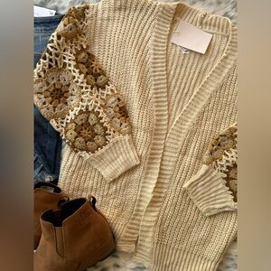 Beige ivory Flower floral granny embroidered cardigan boho bohemian sweater