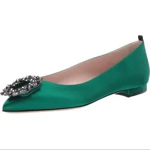 SJP Divine flats in Green Satin