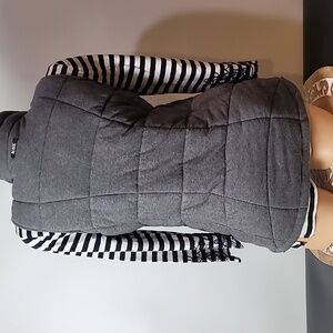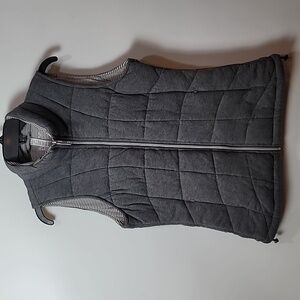 This Marc New York Andrew Marc vest is a stylish and comfortable addition to any wardrobe. The vest is made of polyester outer shell and nylon lining material, and features a solid pattern with gray color. It has a short length and zip closure, with zipped pockets, and full zip features.