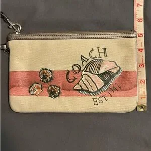 Perfect for the beach lover. Canvas Coach conch-shell / shell wristlet. Inside pocket.