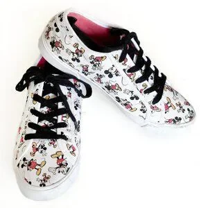 DISNEY Mickey Mouse All Over Canvas Shoes Women's Sz 8 Shoes Low White Sneakers