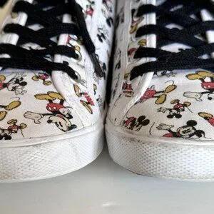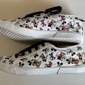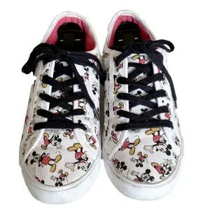 Super cute DISNEY Mickey Mouse All Over Canvas Shoes Women's Size 8 Shoes White Sneakers. Preowned and in very good condition. Some normal wear scuff marks on the rubber.