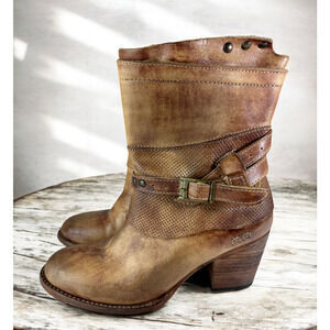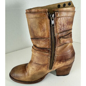 Bed Stu Cobbler Series Distressed Bench Made Ankle Boots Zip Rustic Brown Size 7
