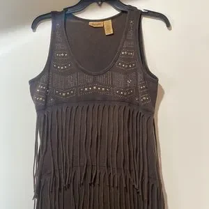 @jmp1822 oh yeah, there's stretch! it's almost similar to like a t-shirt dress, material wise. and the fringes completely cover the mid section, for me I have a lower pooch, so it makes you feel real comfortable