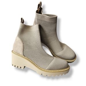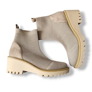 Nicole Miller Taupe-Beige Ankle Wedge Knit Sock Boots