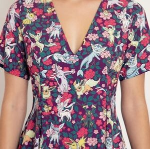 Blackmilk Pokemon Eevee Evolution Floral V Dress Size Large NWOT