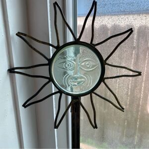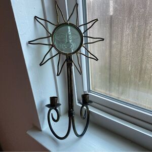 Vintage Metal & Glass Sun Wall Sconce Double Taper Candle Holder