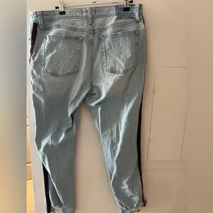 Light wash skinny jeans cropped w/maroon & beige on sides. NWOT as I washed them and removed the tags.