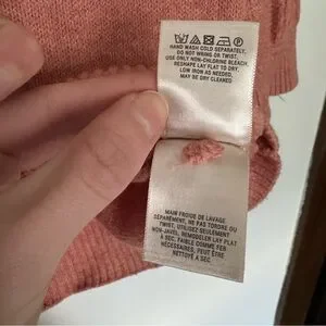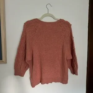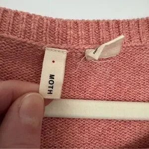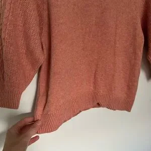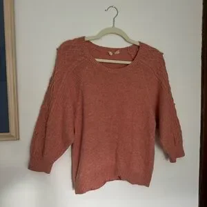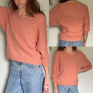 Sweater from Moth by Anthropologie in a stunning pink peachy color! Size S! Soft & comfortable with high quality fabric, a wool & cotton blend! Cable knit texture at the sleeves for a beautiful detail! A perfect addition to any wardrobe, can be dressed up or down and fits with many aesthetics/styles! Feminine, timeless, preppy but bohemian! Has original thread attached to tag in case of need for future repairs!