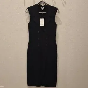 The Milena is our knitted tuxedo-style dress, crafted in a sleeveless profile with a double-breasted button closure. This piece is fabricated with stretch for a fit that hugs the profile and accentuates natural curves. Wear it with heels to the boardroom or to your next event for a bold edit. Notch lapels Sleeveless. Double-breasted closure. Stretch fabrication. Ribbed arrangement. Midi length.