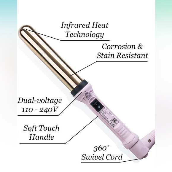 This curling wand is in the color 💕blush pink. It has a 360 degree rotating cord for ease of use.