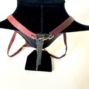 HANDMADE Maroon Fringe Leather with Pearls & Silver Beads Necklace