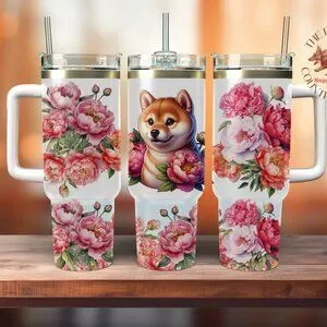 Akita & Peony Flowers 40 oz. Thirst Quencher Insulated Tumbler