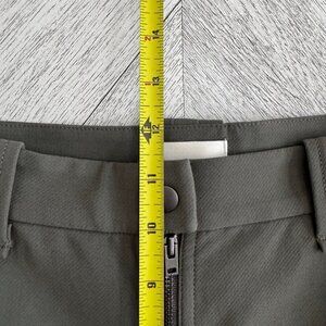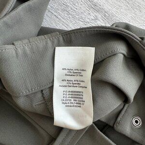 For the life of me I cannot figure out what the style name of these pants are - the article number is 62048 - but they are a really comfortable option for office wear! These green pants are made from nice, thick nylon-cotton-spandex fabric that is comfortable to wear but with a nice, heavier weight to them. Feature a snap button close and exposed front zipper. Two utility style back pockets. In excellent condition with no flaws to note. No rips, stains or tears. Size 8. See photos for measurements and details.