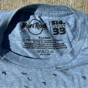 This Hard Rock Cafe Mall of America Imagine Dragons T Shirt is perfect for any music lover. Featuring a graphic print with the iconic Imagine Dragons logo, this shirt is made of a comfortable blend of polyester, cotton, and polyester blend fabrics. The short sleeve shirt has a crew neck and a regular fit, making it ideal for summer, spring, and fall seasons. The shirt is designed with knit fabric type and features a logo accent, adding to its unique style. The shirt is available in XL size and is suitable for men. It is a great addition to any rock or music themed wardrobe.