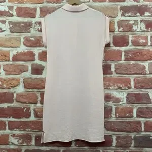 ▪️ Women’s Dress: Collared neckline, button front pullover, hammered texture, semi-sheer, stretchy, short cuffed sleeves, and threaded belt loops to add your own belt. Belt not included. Pre-owned. Wear it with your favorite flats or heels!