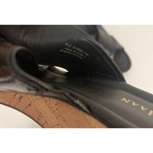 Cole Haan Women's Size 11B NikeAir Black Leather Strap Wedge Heel Slide Sandals