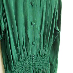 Karin Stevens Gown | 1980s Drop Waist Dress | Forrest Green Pleated Modest Frock