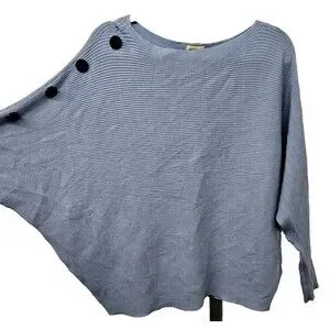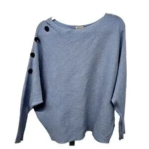 Greige Ribbed Dolman Sweater Womens Size L Side Buttons Long Sleeves Light Blue