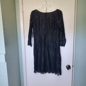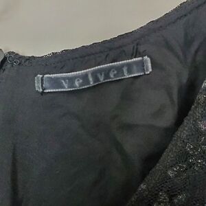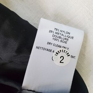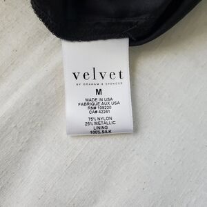 Velvet brand by Graham & Spencer Holiday party dress. The Silver metallic 25% is very subtle and adds just a bit of sparkle. 75% nylon. The lining is 100% silk. It has 3/4 sleeves. Please see photos for measurements.