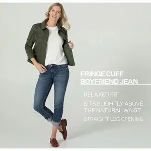 π 2/$30 π Lee Riders Women's Boyfriend Fringed Cuff Jeans Sz 8