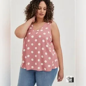 Torrid Challis Stitch Detail Tank, Pink Dot, Size 2 (2X 18-20)