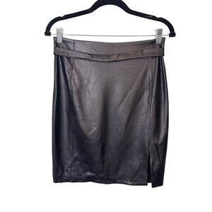 Lenny B. Paris Black Vegan Black Leather Belted Pencil Mini Skirt Size 1