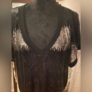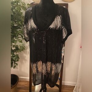 New With Tags International Concepts Color-Blocked Black/Silver Sequined Tunic Tunic Is Sheer