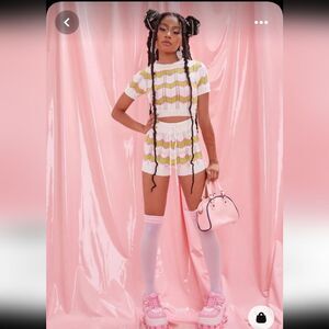 Dolls Kill Ivory Swirl Kiss Crochet Sweater Shorts High Waist Green Pink…