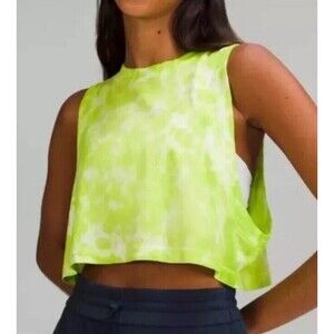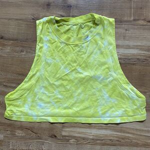 LULULEMON 10 All Yours Cropped Workout Top Pima Cotton Tie Dye Tank Neon Yellow