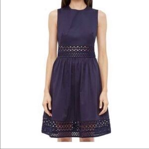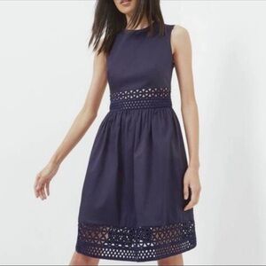 Ted Baker London Navy Blue Eyelet Crochet Lace Panel Fit & Flare Dress