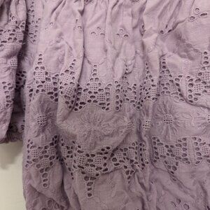 Cute lavender crop top. Off the shoulder, fun floral eyelet detail. Gently used condition.