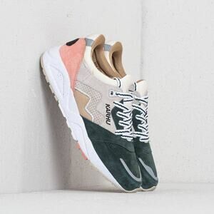 NIB: Finland's "Aria Silver Birch" an exotic mix of tones across the Aria, a stylish combination of birch green & June bug are found on the soft pigskin suede & textile uppers/ lace up design/ mesh underlays/ mono sock collar/ injected molded midsole/ rubber outsole by Karhu.