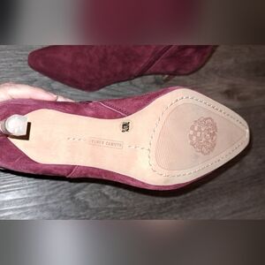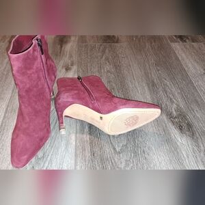Vince Camuto skinny heel velvet boot in burgendy.