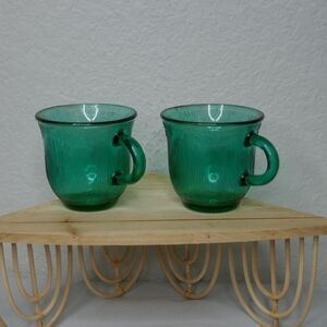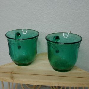 Vintage Fortecrisa Mexico Emerald Green Glass Tea Cup Mug 1980s Set of 2