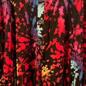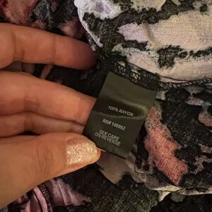 Perfect staple piece in your closet! Lightweight fabric features a print and is a mid length. Has pockets and button detail on front. Waist 17” without stretch. 26.5” long. Skirt width 52”. Never worn. No tags.