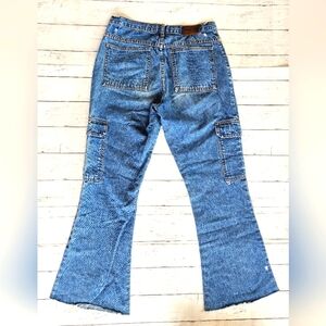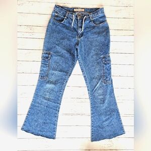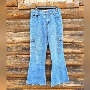 Vintage Y2k Zana Di Blue Denim Cargo Pocket Jeans Flare Distressed w/ Tie String