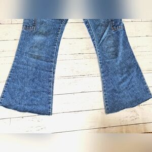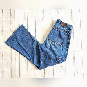 In great wearable Vintage Condition! Minor expected wear but nothing serious, no tears holes etc. Flare wide leg pant bottom that has a raw edge, may have been cut but it's even and looks great with the style of Distressed cargo jeans.