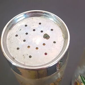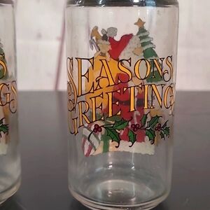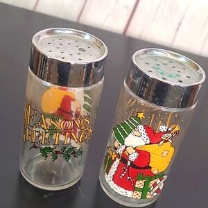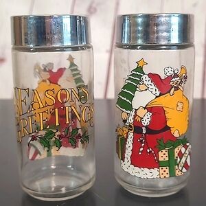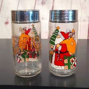Vintage 80s Painted Glass Holiday Christmas Santa Claus Salt & Pepper Shakers