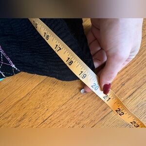 This is a gorgeous 1970s vintage dress made by Sandine originals and sold at high end department store i magnin. The dress is made of a black velour/ velvet like fabric. It is a sleeveless maxi dress with shirred bust and bright embroidery along the neckline, waist and bottom in blues. The dress zips down the back. Overall in good vintage condition with no major flaws to note. See measurements in photos for best fit - the bust is flexible due to the shirring. Approx a small to Xs.