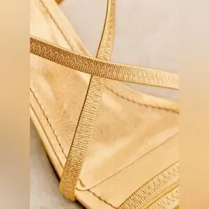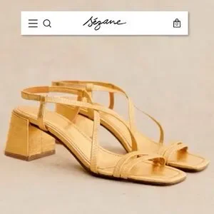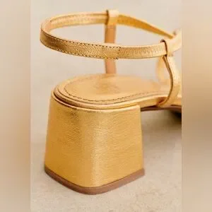 SEZANE PERNILLE SANDALS GOLD 37 6.5 Strappy Block Heel Square Toe Metallic Shoes